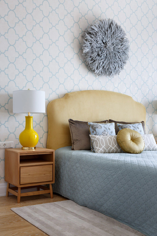 Фотография: Спальня в стиле Современный, Квартира, Проект недели, Желтый, Голубой, Санкт-Петербург, Монолитный дом, 4 и больше, Более 90 метров, Маргарита Сивухина, Иван Сорокин – фото на INMYROOM