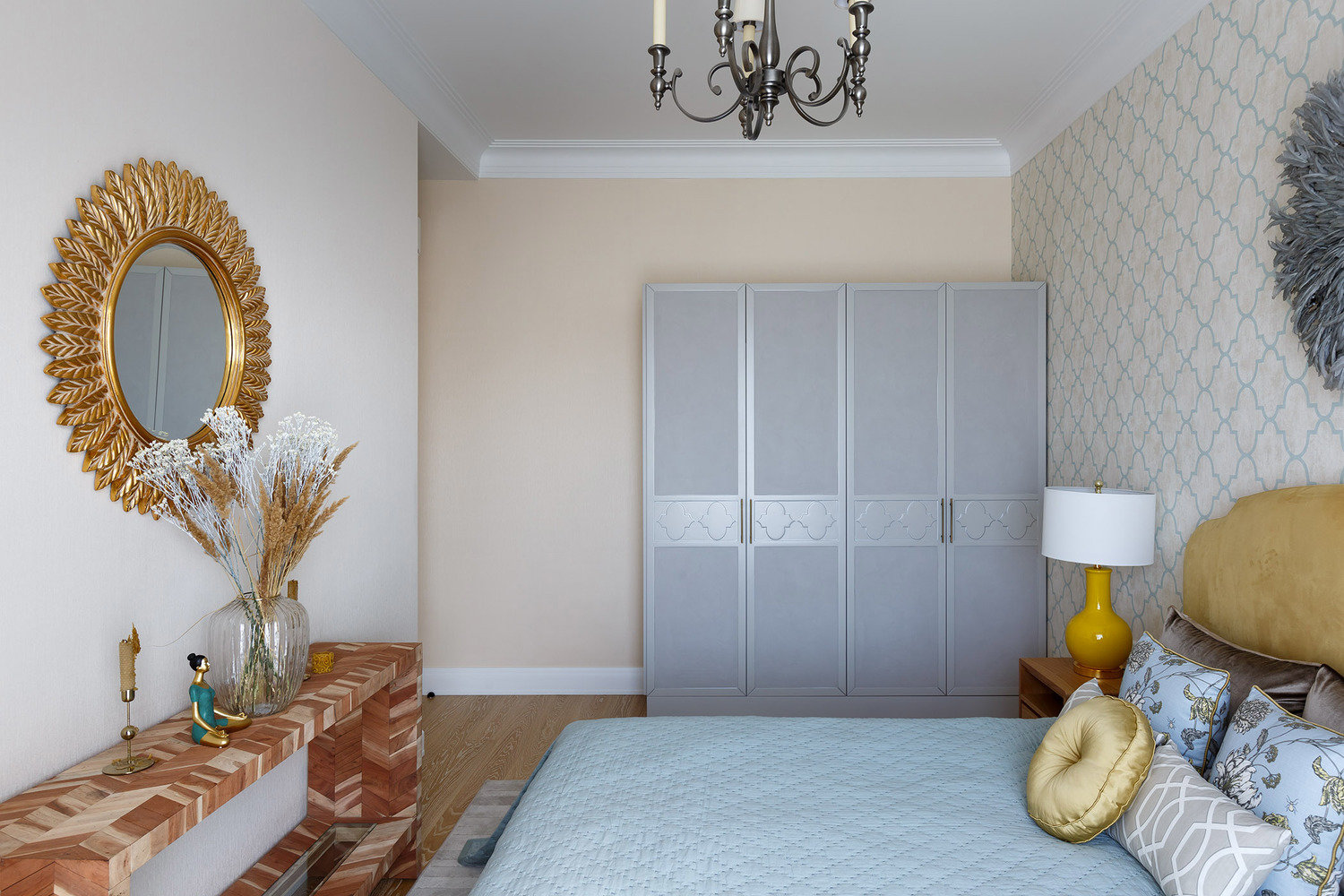 Фотография: Спальня в стиле Современный, Квартира, Проект недели, Желтый, Голубой, Санкт-Петербург, Монолитный дом, 4 и больше, Более 90 метров, Маргарита Сивухина, Иван Сорокин – фото на INMYROOM
