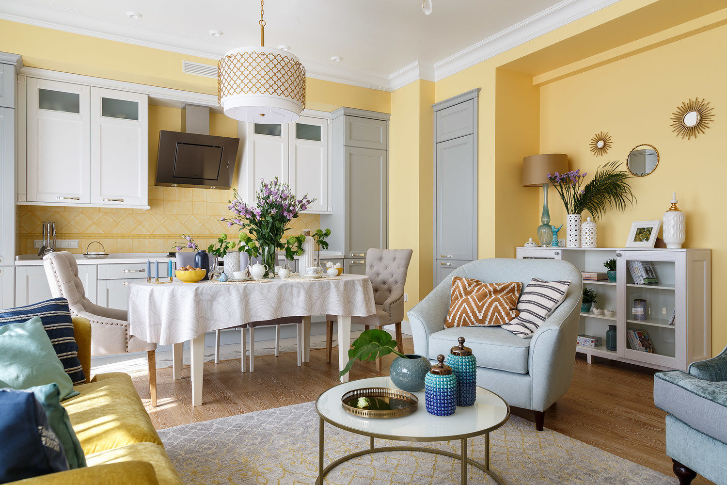 Фотография: Кухня и столовая в стиле Современный, Квартира, Проект недели, Желтый, Голубой, Санкт-Петербург, Монолитный дом, 4 и больше, Более 90 метров, Маргарита Сивухина, Иван Сорокин – фото на INMYROOM