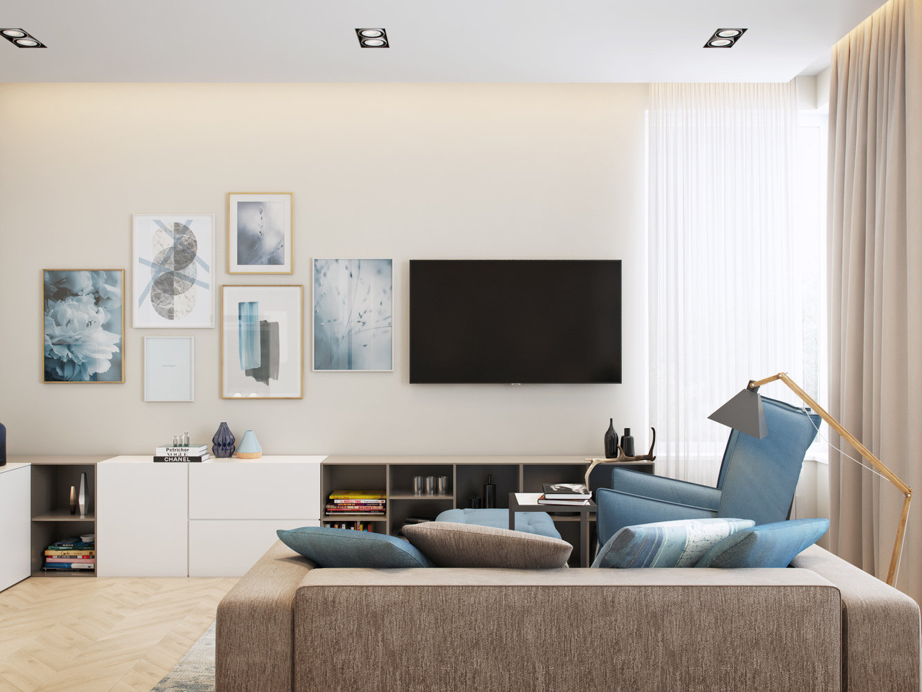 Фотография: Гостиная в стиле Современный, Квартира, Студия, Miele, Проект недели, Евгения Матвеенко, 40-60 метров, ЖК "Ривер парк" – фото на INMYROOM