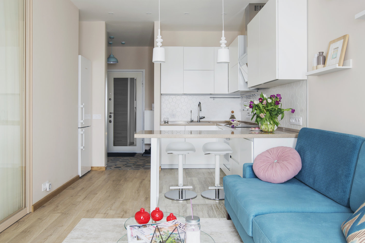 Фотография: Кухня и столовая в стиле Современный, Квартира, Студия, Проект недели, Москва, Васту, Монолитный дом, ЖК «Водный», 40-60 метров, SOVA Interiors – фото на INMYROOM