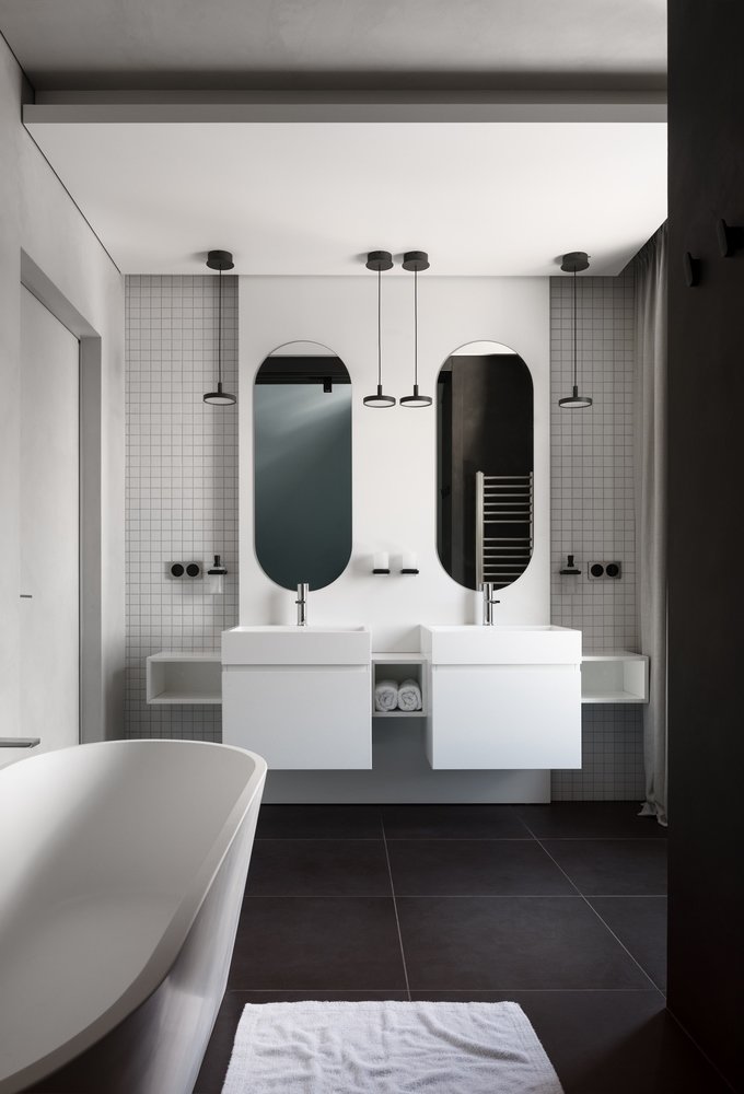 Дизайн двухэтажного дома с кухней-гостиной и камином4,8