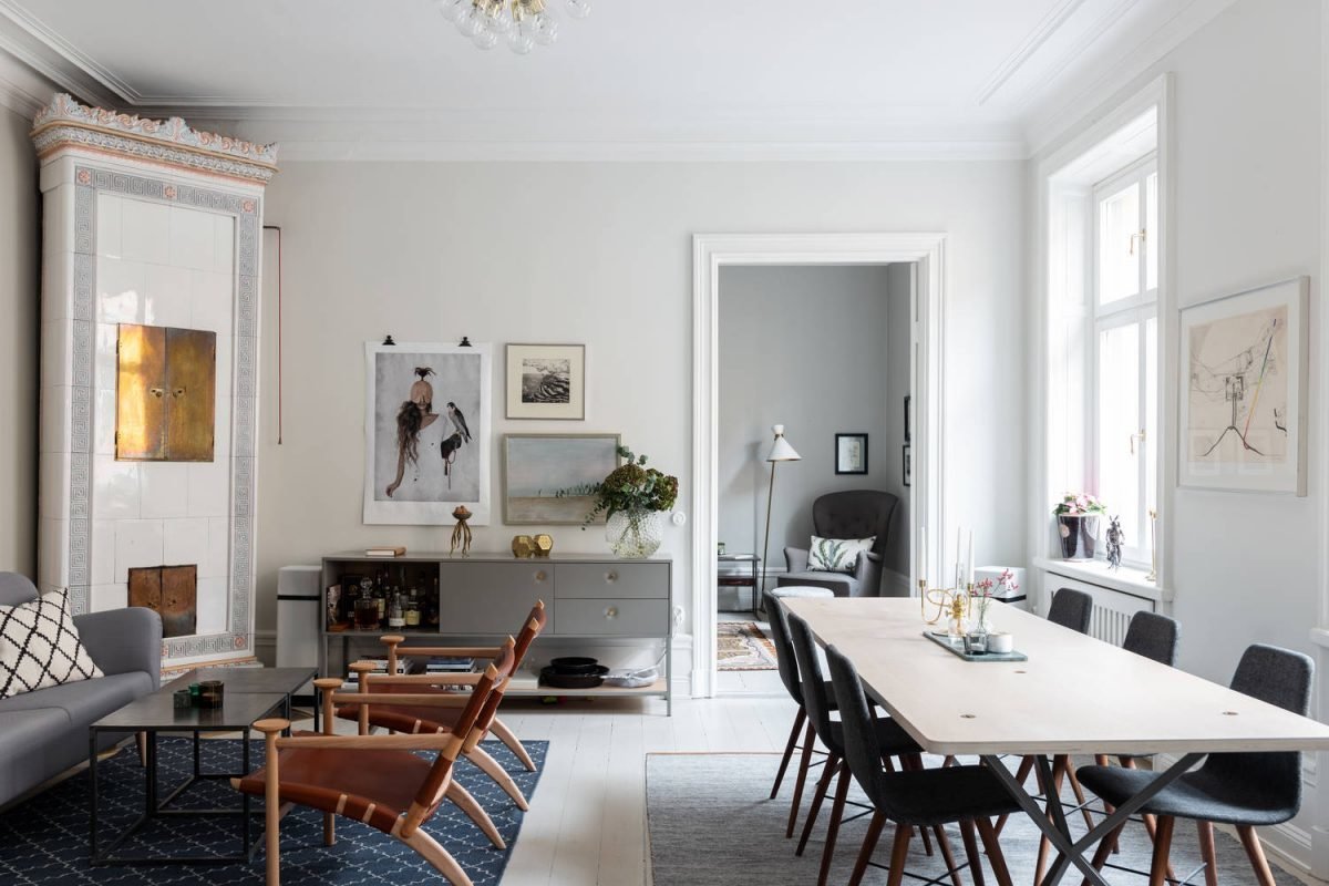 Фотография: Гостиная в стиле Современный, Скандинавский, Эклектика, Декор интерьера, Квартира, Швеция, Бежевый, Стокгольм, кухня-гостиная с барной стойкой, Как оформить кухню в современном стиле, 4 и больше, Более 90 метров – фото на INMYROOM