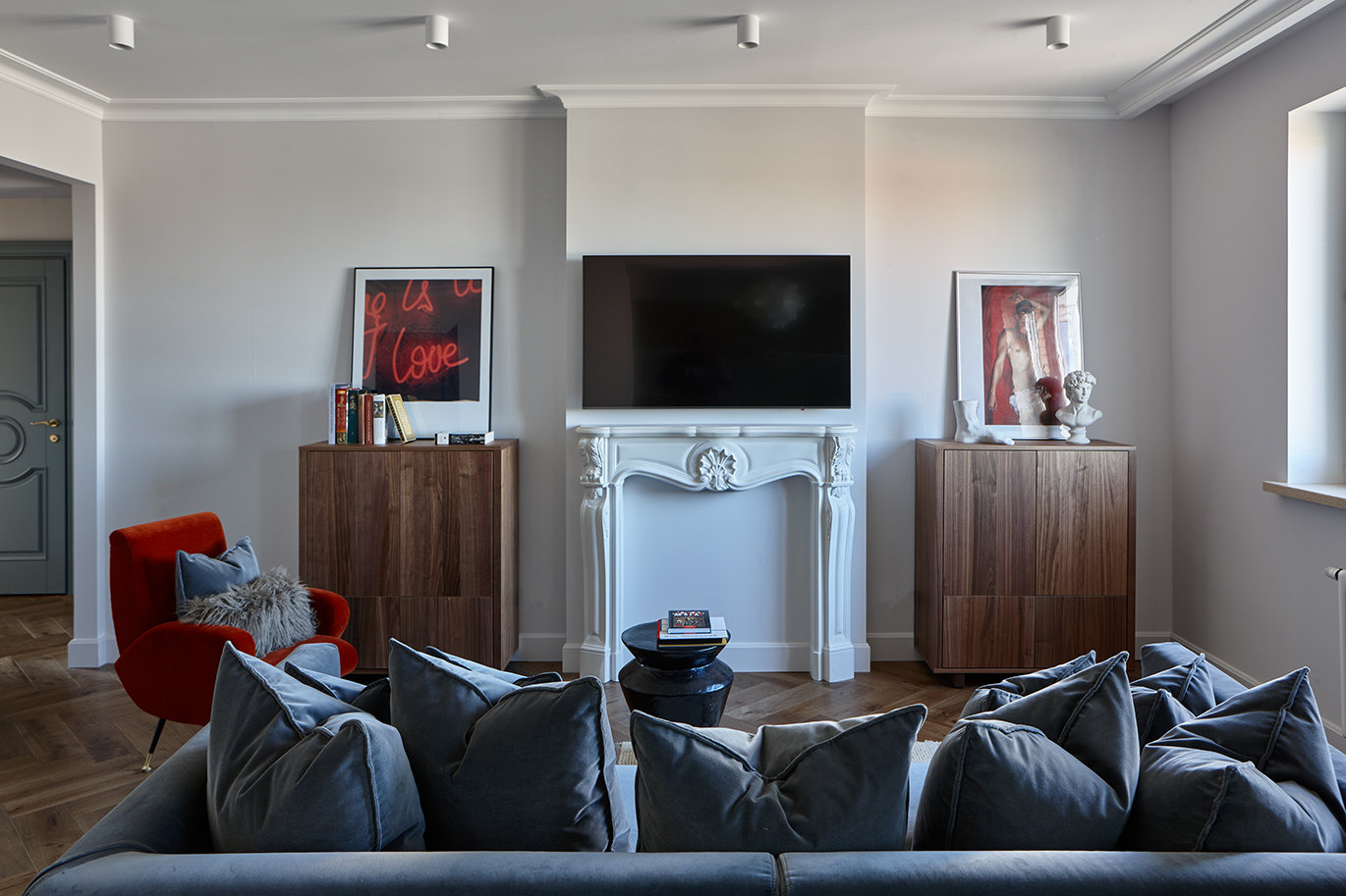 Фотография: Гостиная в стиле Современный, Квартира, Проект недели, Москва, Новая Москва, 3 комнаты, Более 90 метров, Монолитно-кирпичный, Вера Савельева, ЖК "Татьянин парк" – фото на INMYROOM