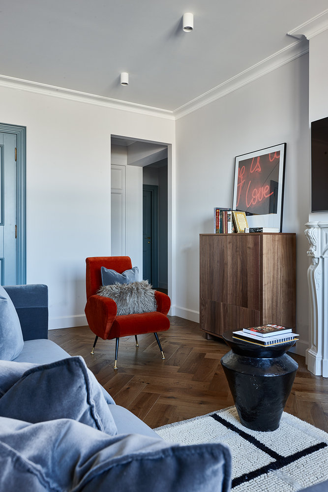 Фотография: Гостиная в стиле Современный, Квартира, Проект недели, Москва, Новая Москва, 3 комнаты, Более 90 метров, Монолитно-кирпичный, Вера Савельева, ЖК "Татьянин парк" – фото на INMYROOM