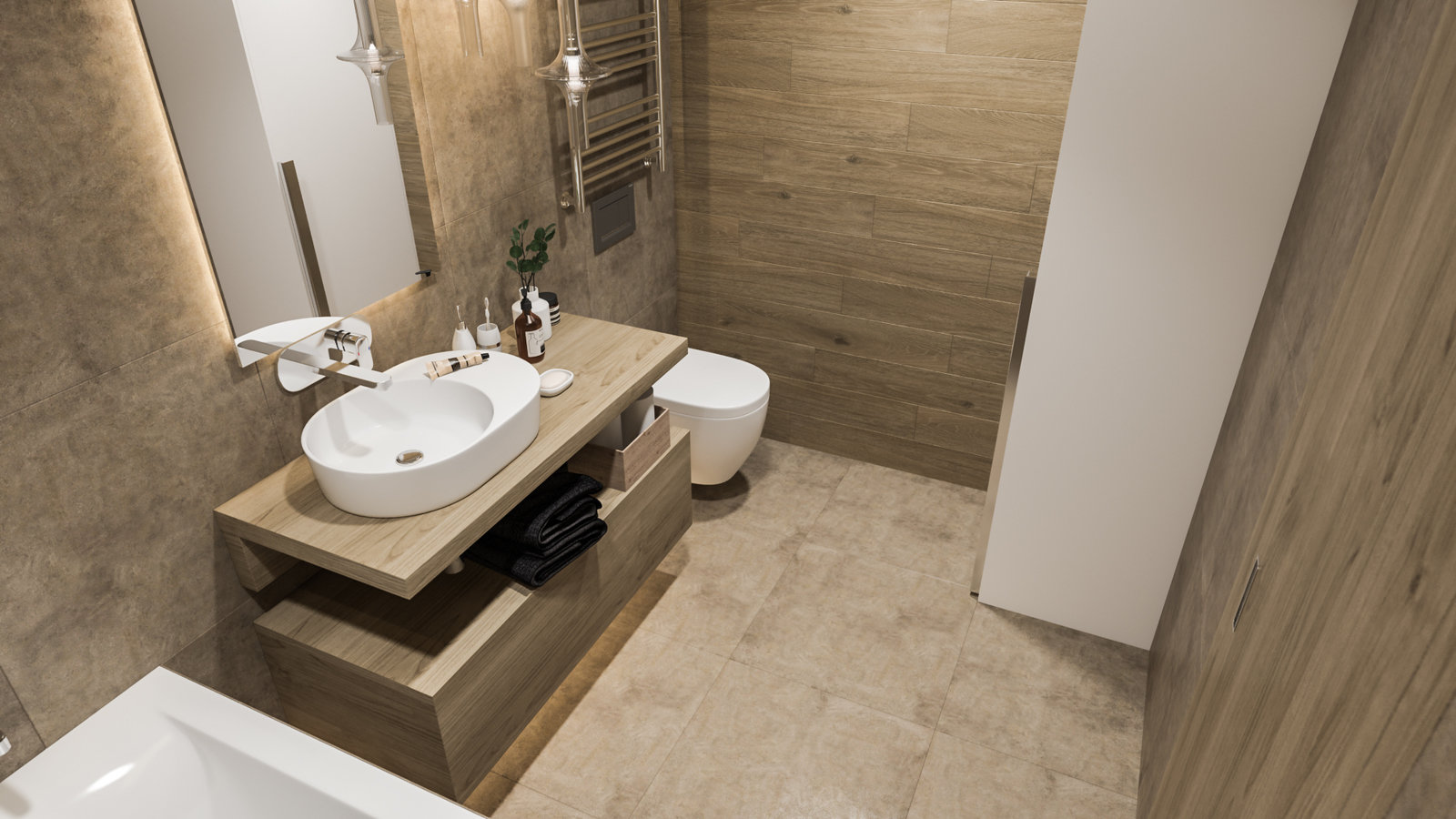 Фотография: Ванная в стиле Современный, Эклектика, Квартира, Проект недели, Москва, Samsung, 3 комнаты, 60-90 метров, ЖК "Мосфильмовский", True interior, QLED – фото на INMYROOM