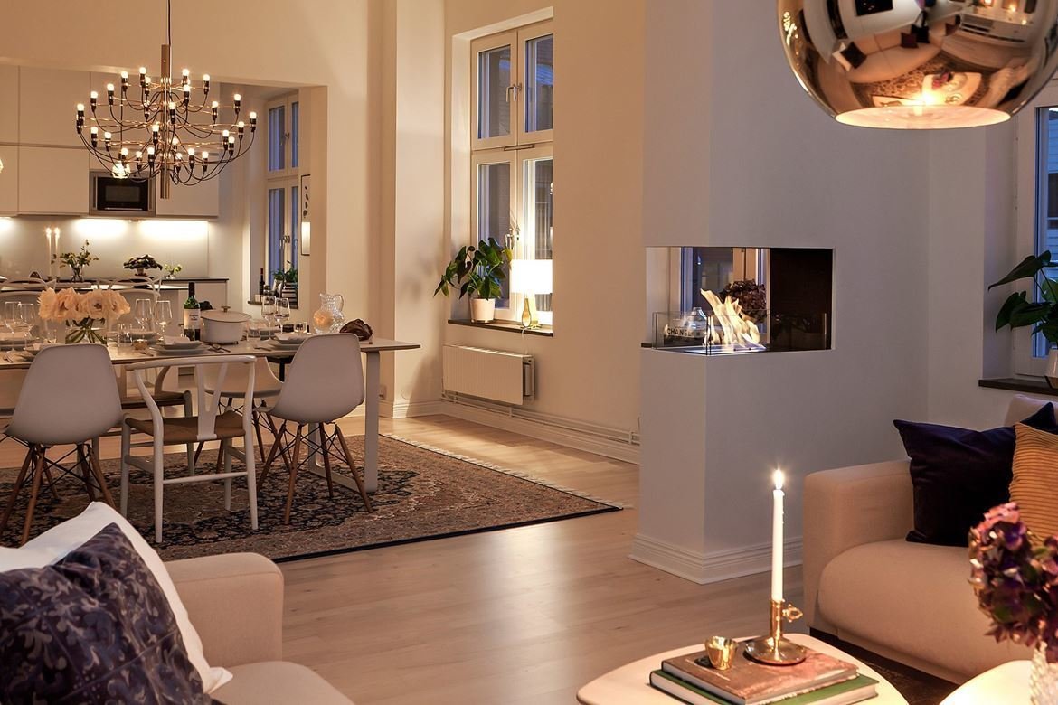 Интерьер с красивым освещением: квартира в Мальме4,9