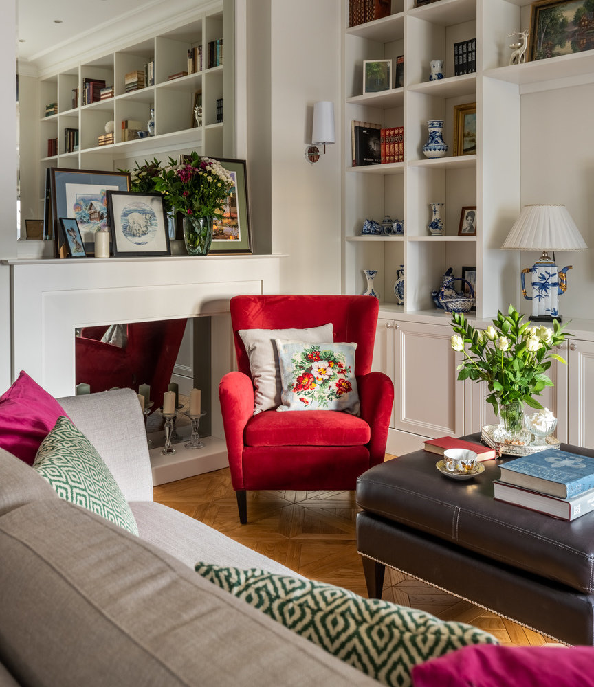 Фотография: Гостиная в стиле Классический, Современный, Проект недели, Москва, Старый фонд, Кирпичный дом, 3 комнаты, 60-90 метров, Наталья Широкорад – фото на INMYROOM