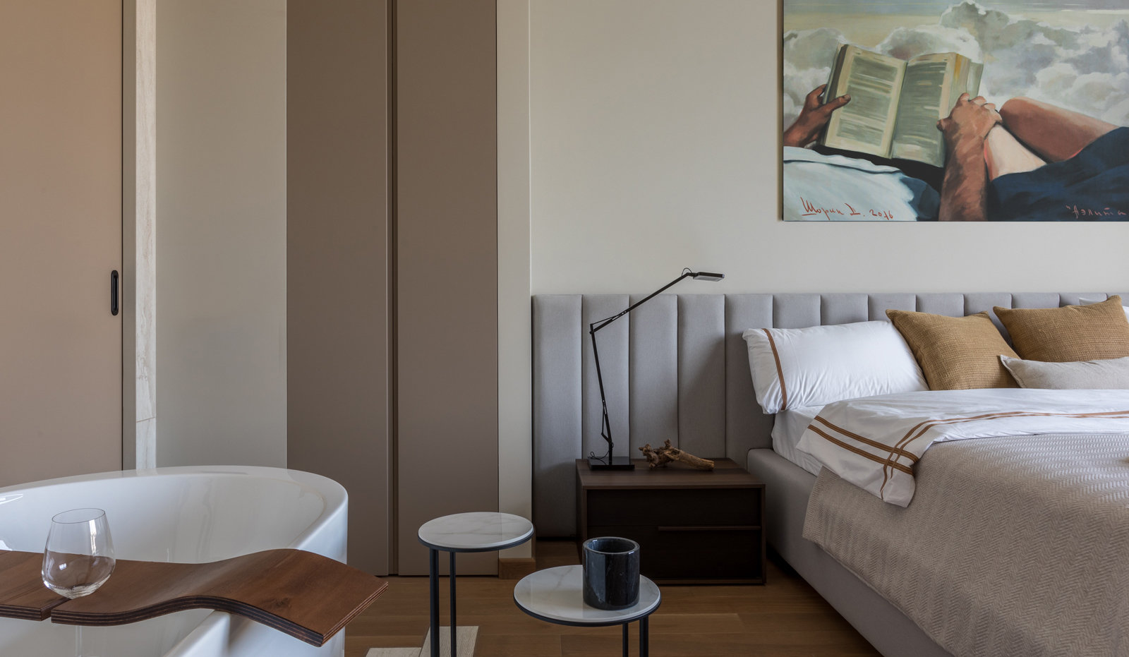 Фотография: Спальня в стиле Современный, Квартира, Проект недели, Москва, Монолитный дом, 2 комнаты, 60-90 метров, Анастасия Рыкова, #эксклюзивныепроекты, Анна Денисова, ЖК «Балчуг» – фото на INMYROOM