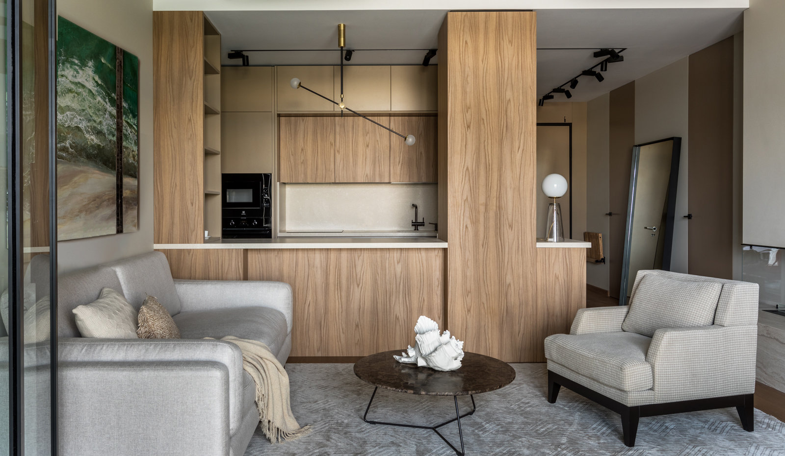 Фотография: Гостиная в стиле Современный, Квартира, Проект недели, Москва, Монолитный дом, 2 комнаты, 60-90 метров, Анастасия Рыкова, #эксклюзивныепроекты, Анна Денисова, ЖК «Балчуг» – фото на INMYROOM