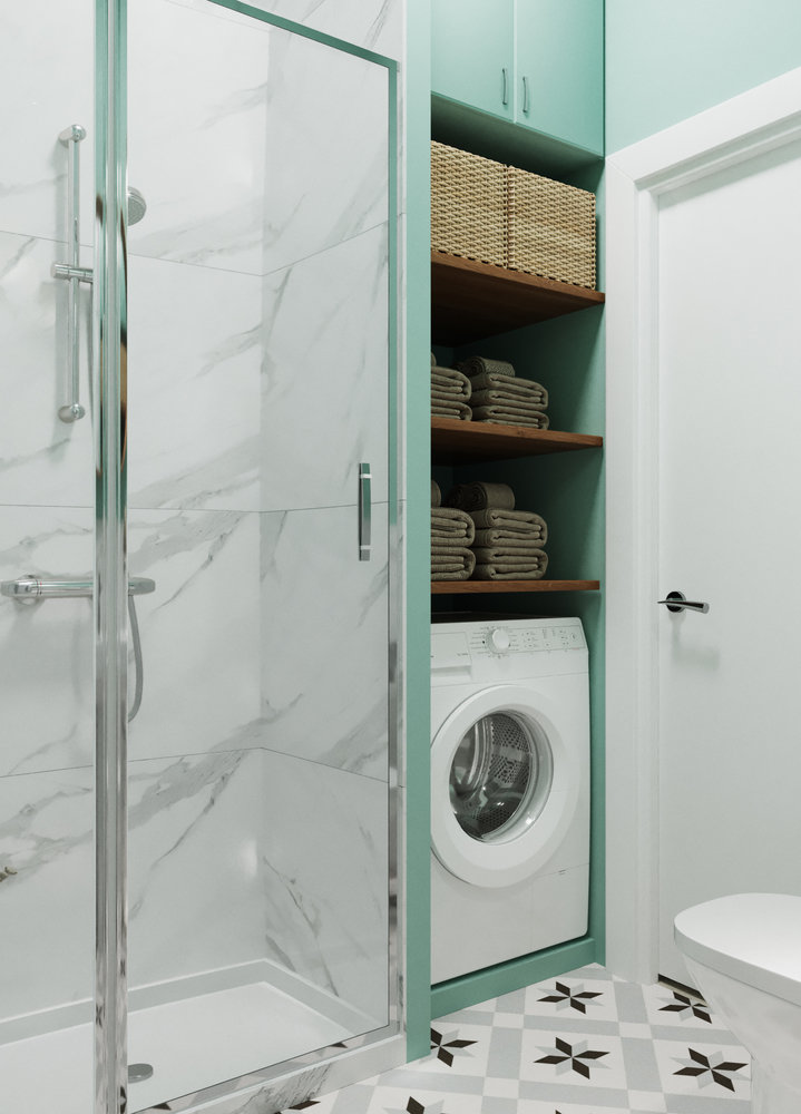 Фотография: Ванная в стиле Скандинавский, Современный, Квартира, Студия, Россия, Белый, Проект дня, Москва, Желтый, Голубой, Бирюзовый, до 40 метров, Legkocom – фото на INMYROOM