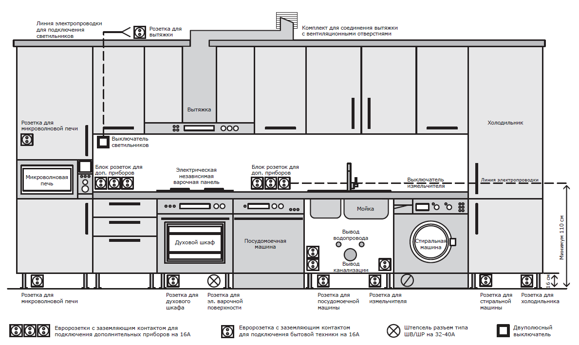 Как разместить розетки на кухне: схемы + советы4,4