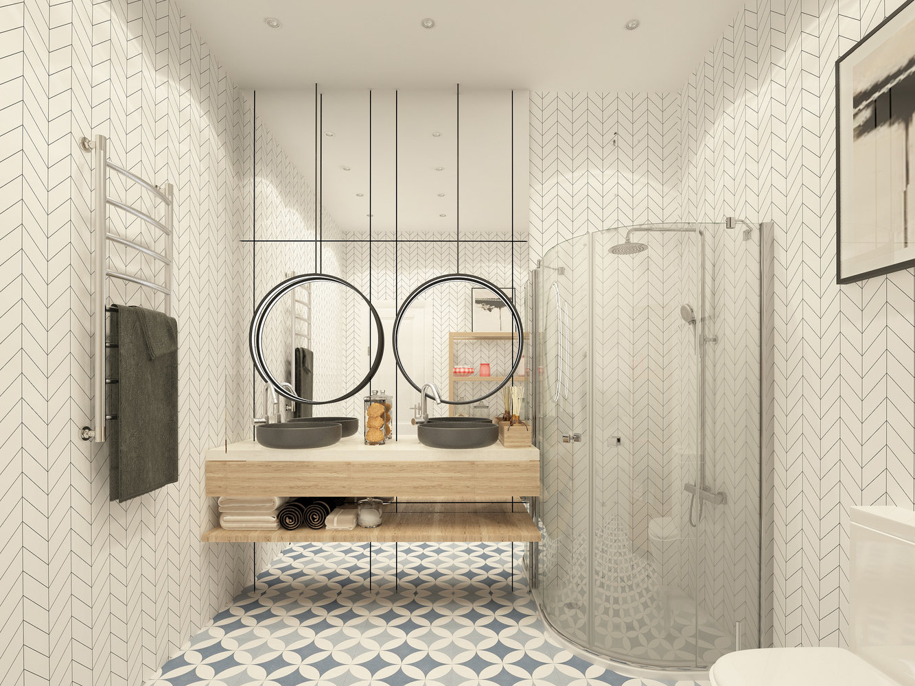 Фотография: Ванная в стиле Современный, Скандинавский, Квартира, Проект дня, Москва, Монолитный дом, 3 комнаты, Более 90 метров, Юлия Кандыбей, ЖК «Дом на Мосфильмовской» – фото на INMYROOM
