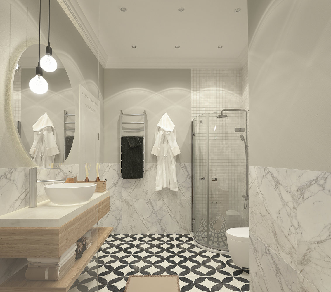 Фотография: Ванная в стиле Современный, Скандинавский, Квартира, Проект дня, Москва, Монолитный дом, 3 комнаты, Более 90 метров, Юлия Кандыбей, ЖК «Дом на Мосфильмовской» – фото на INMYROOM
