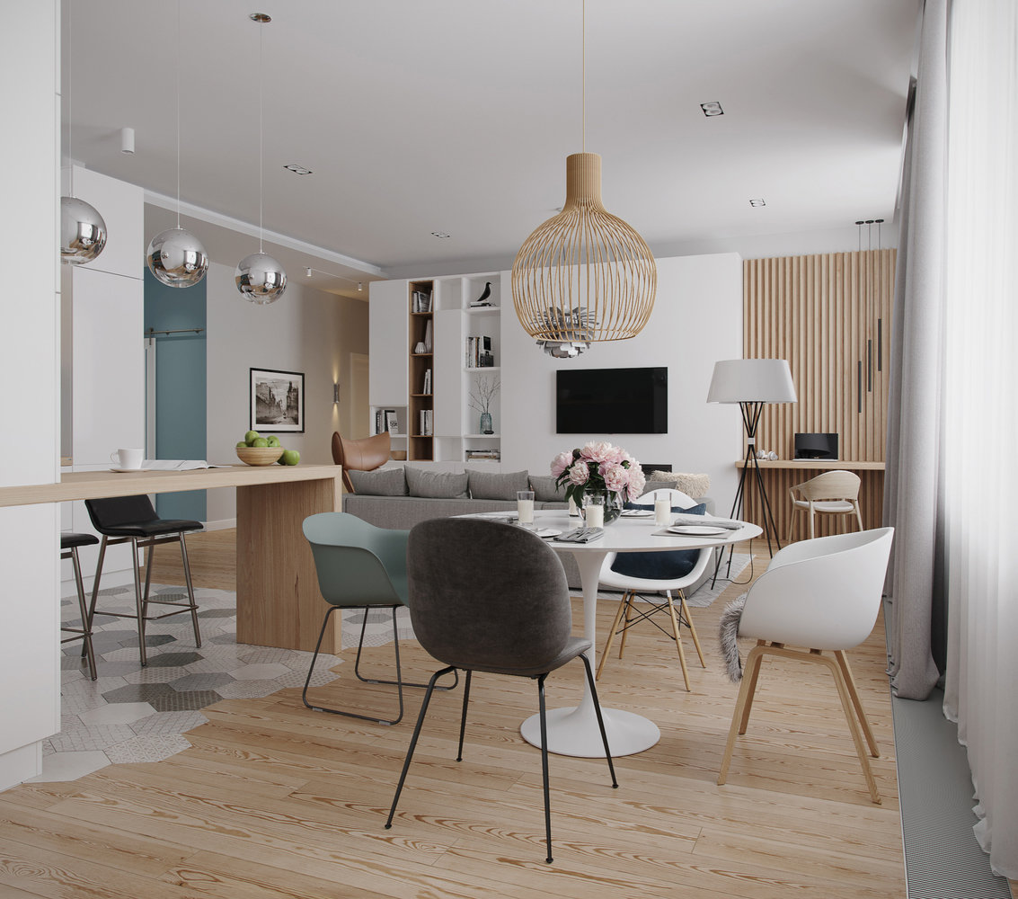 Фотография: Кухня и столовая в стиле Современный, Скандинавский, Квартира, Проект дня, Москва, Монолитный дом, 3 комнаты, Более 90 метров, Юлия Кандыбей, ЖК «Дом на Мосфильмовской» – фото на INMYROOM