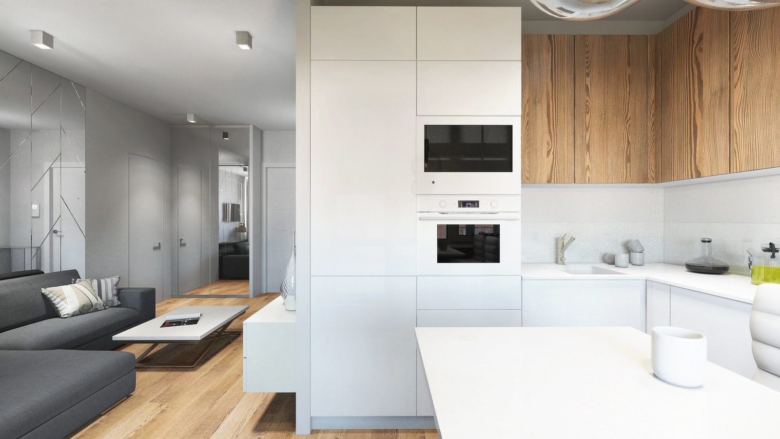 Фотография: Кухня и столовая в стиле Современный, Квартира, Проект недели, Бежевый, Серый, 2 комнаты, 40-60 метров, Олеся Березовская – фото на INMYROOM