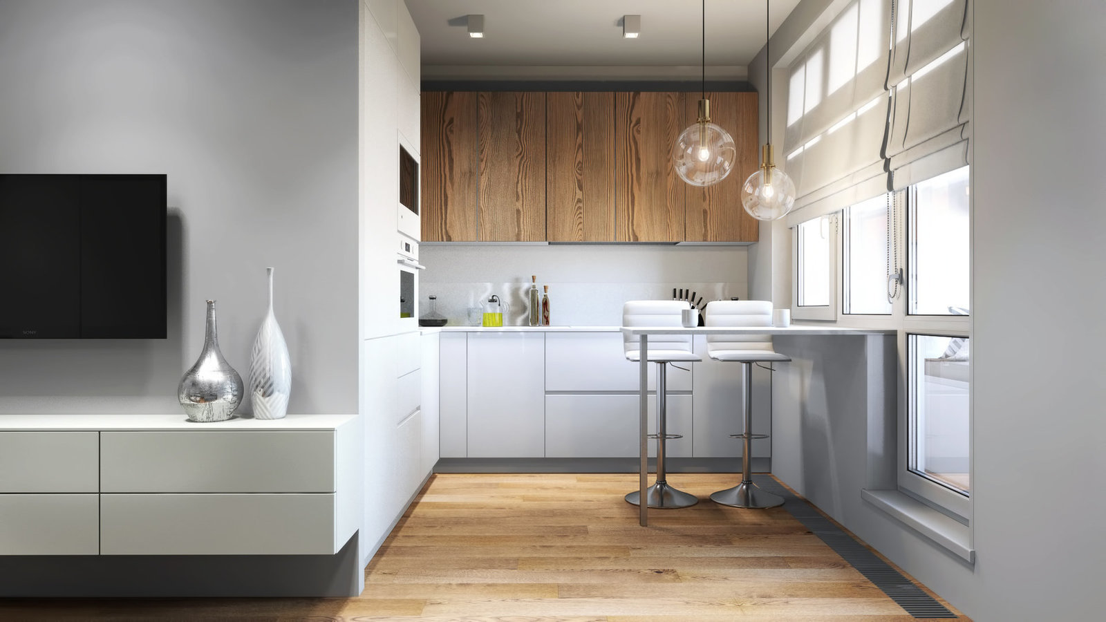 Фотография: Кухня и столовая в стиле Современный, Квартира, Проект недели, Бежевый, Серый, 2 комнаты, 40-60 метров, Олеся Березовская – фото на INMYROOM