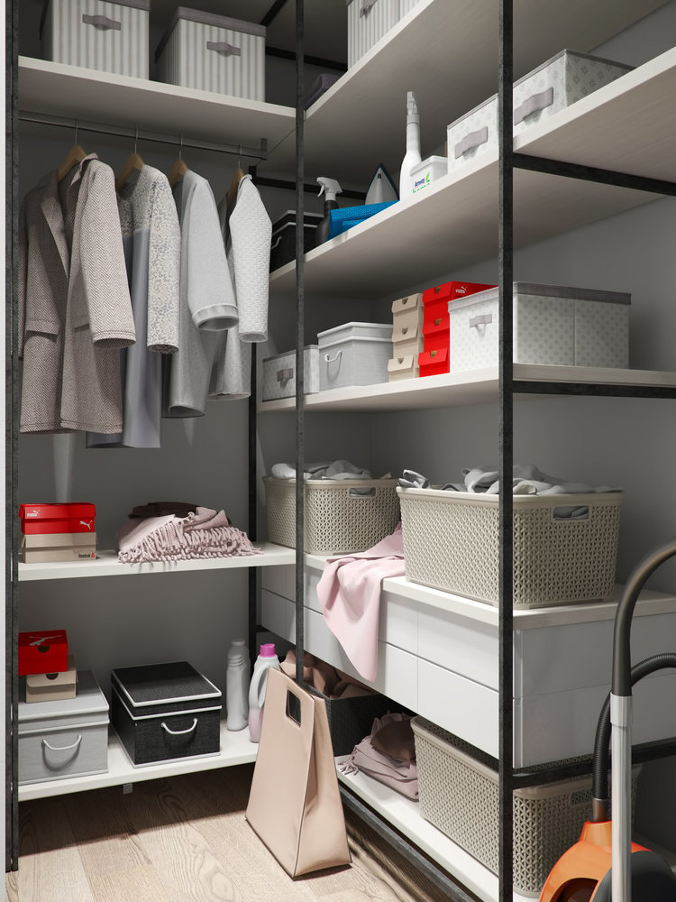 Фотография: Гардеробная в стиле Современный, Квартира, Проект недели, Бежевый, Серый, 2 комнаты, 40-60 метров, Олеся Березовская – фото на INMYROOM