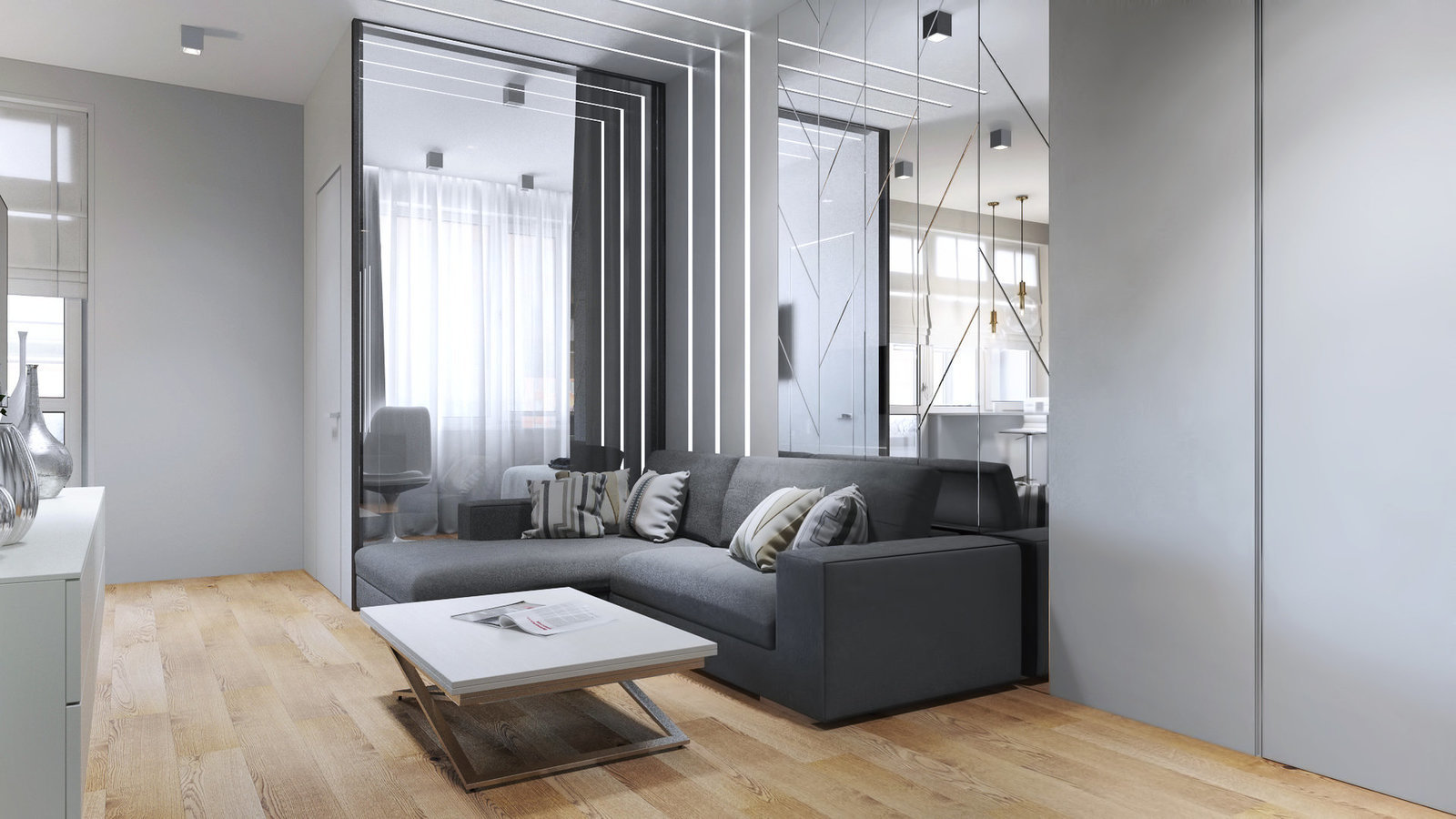 Фотография: Гостиная в стиле Современный, Квартира, Проект недели, Бежевый, Серый, 2 комнаты, 40-60 метров, Олеся Березовская – фото на INMYROOM