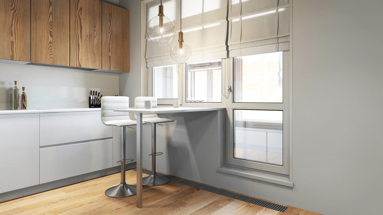 Фотография: Кухня и столовая в стиле Современный, Квартира, Проект недели, Бежевый, Серый, 2 комнаты, 40-60 метров, Олеся Березовская – фото на INMYROOM
