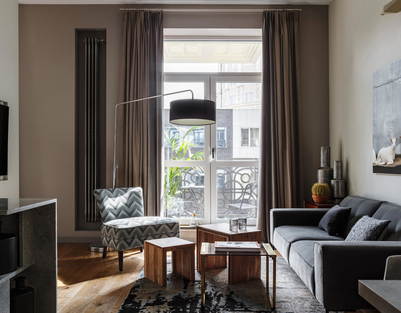 Фотография: Гостиная в стиле Современный, Скандинавский, Квартира, Студия, Проект недели, Москва, Наталия Чайка, Александра Морозова, Монолитный дом, 40-60 метров, ЖК «Английский квартал» – фото на INMYROOM