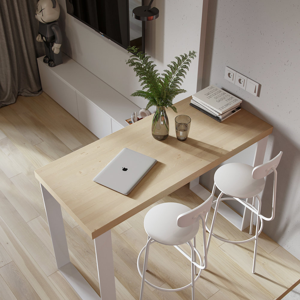 Фотография: Кухня и столовая в стиле Минимализм, Скандинавский, Современный, Малогабаритная квартира, Квартира, Студия, Белый, Розовый, до 40 метров, Андрей Баринов – фото на INMYROOM