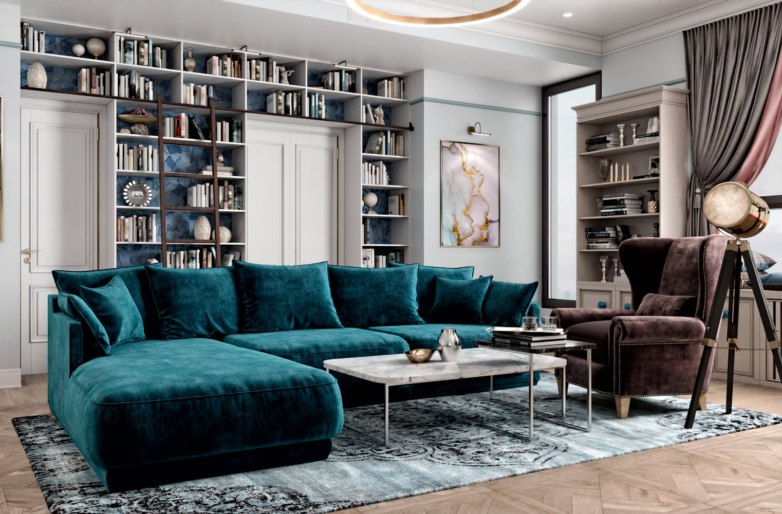 Проект недели: квартира с кухонным островом и камином4,1