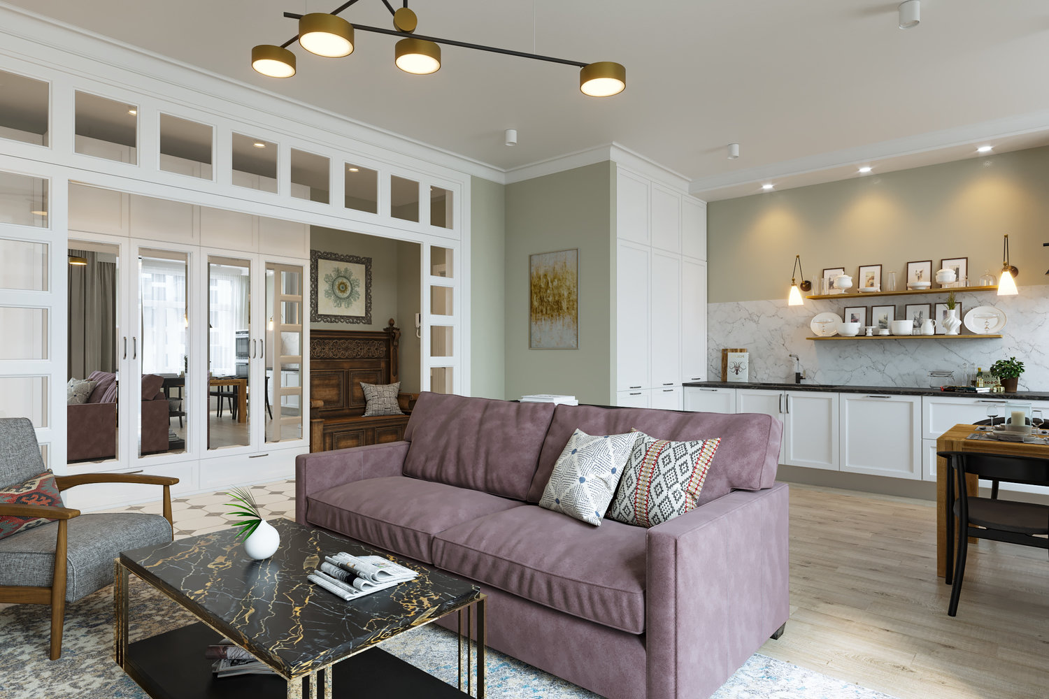 Фотография: Гостиная в стиле Современный, Квартира, Проект дня, Санкт-Петербург, Монолитный дом, 3 комнаты, Более 90 метров, Эльжбета Чегарова – фото на INMYROOM