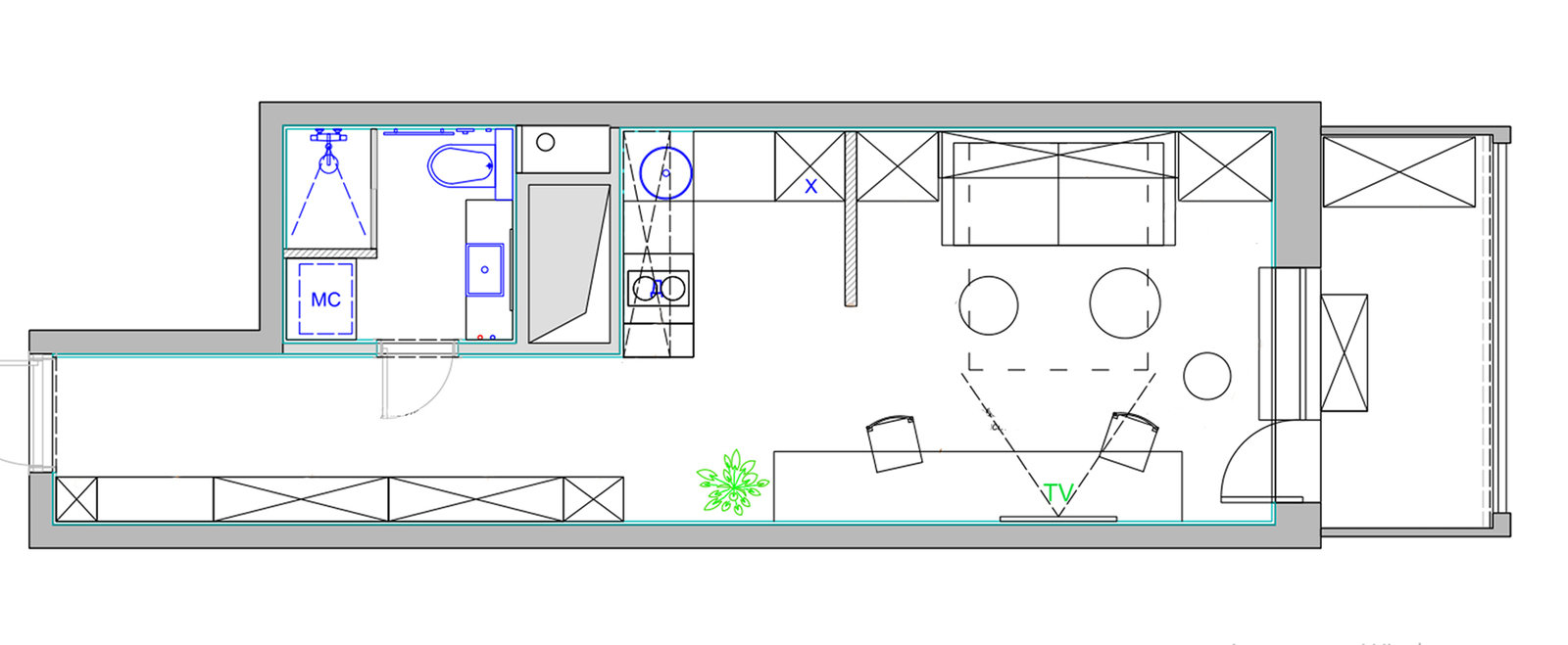 Крохотная студия в 35 квадратов: как в ней все уместить?Гамма