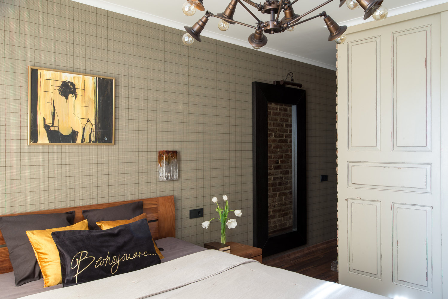 Фотография: Спальня в стиле Лофт, Эклектика, Квартира, Проект недели, Москва, Блочный дом, 3 комнаты, 60-90 метров, И-209, Людмила Данилевич – фото на INMYROOM