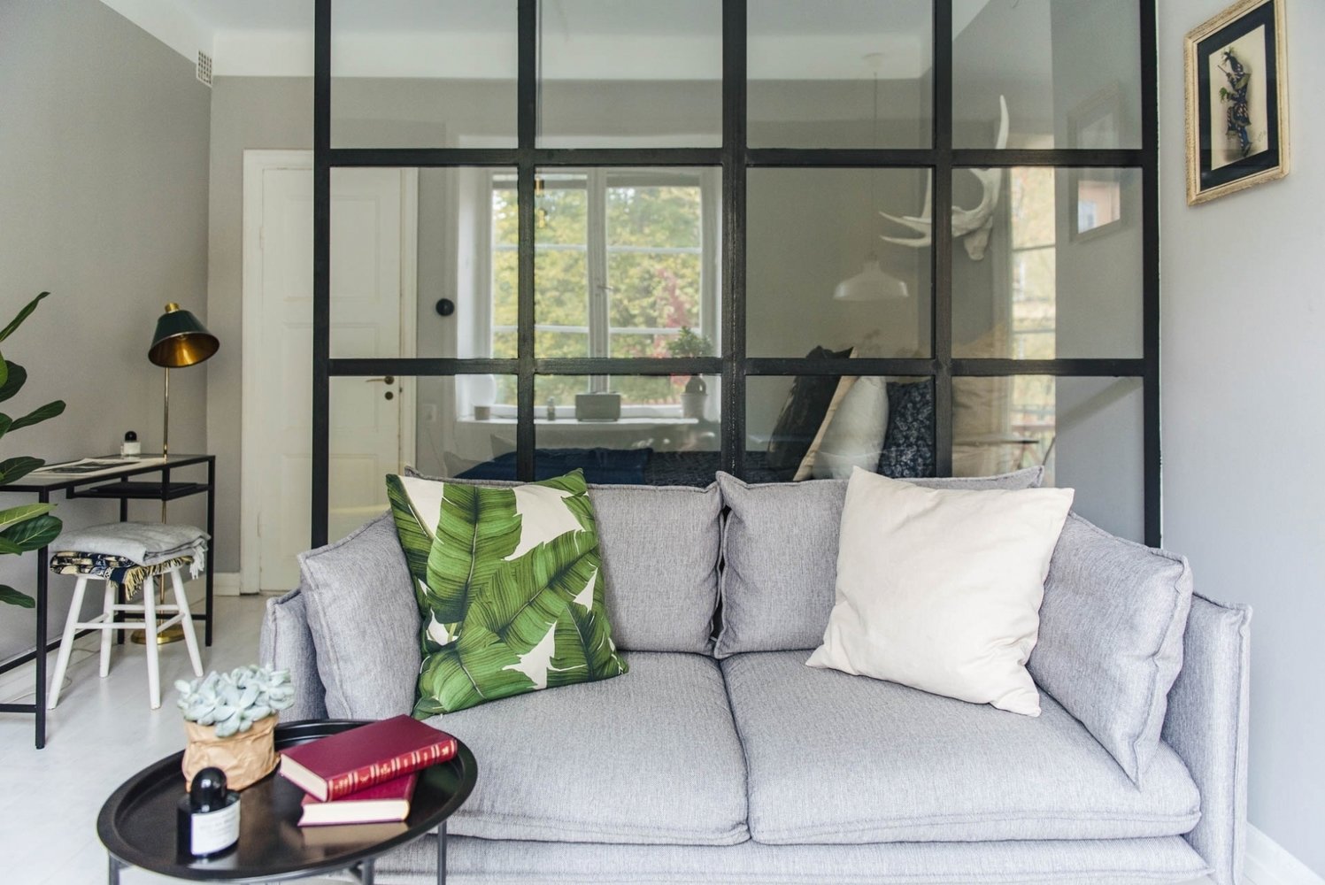 Фотография: Гостиная в стиле Скандинавский, Спальня, Гид, стеклянная перегородка в однушке, энциклопедия_перепланировка, Leroy Merlin, спальня и гостиная в одной комнате – фото на INMYROOM