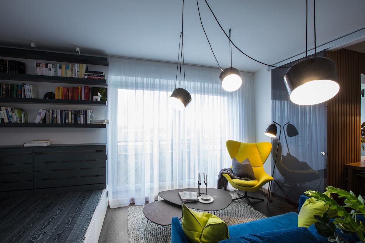 Фотография: Гостиная в стиле Современный, Квартира, Проект недели, Черный, Желтый, Серый, Голубой, Коричневый, Беларусь, Минск, 1 комната, 40-60 метров, Женя Лыкасова – фото на INMYROOM
