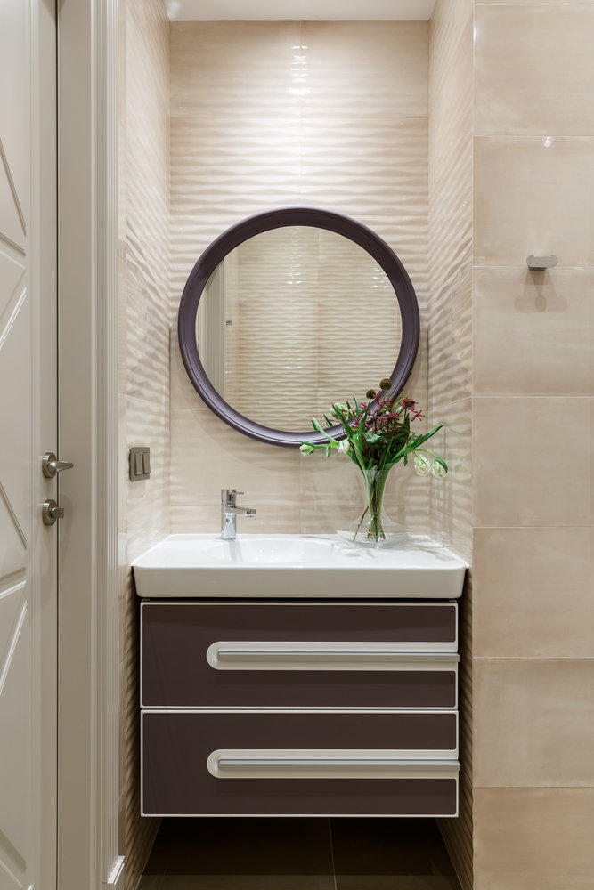Фотография: Ванная в стиле Современный, Классический, Квартира, Проект недели, Бежевый, Голубой, Бирюзовый, Кирпичный дом, 4 и больше, Более 90 метров, Иван Сорокин, Наталия Кацуцевичюс – фото на INMYROOM