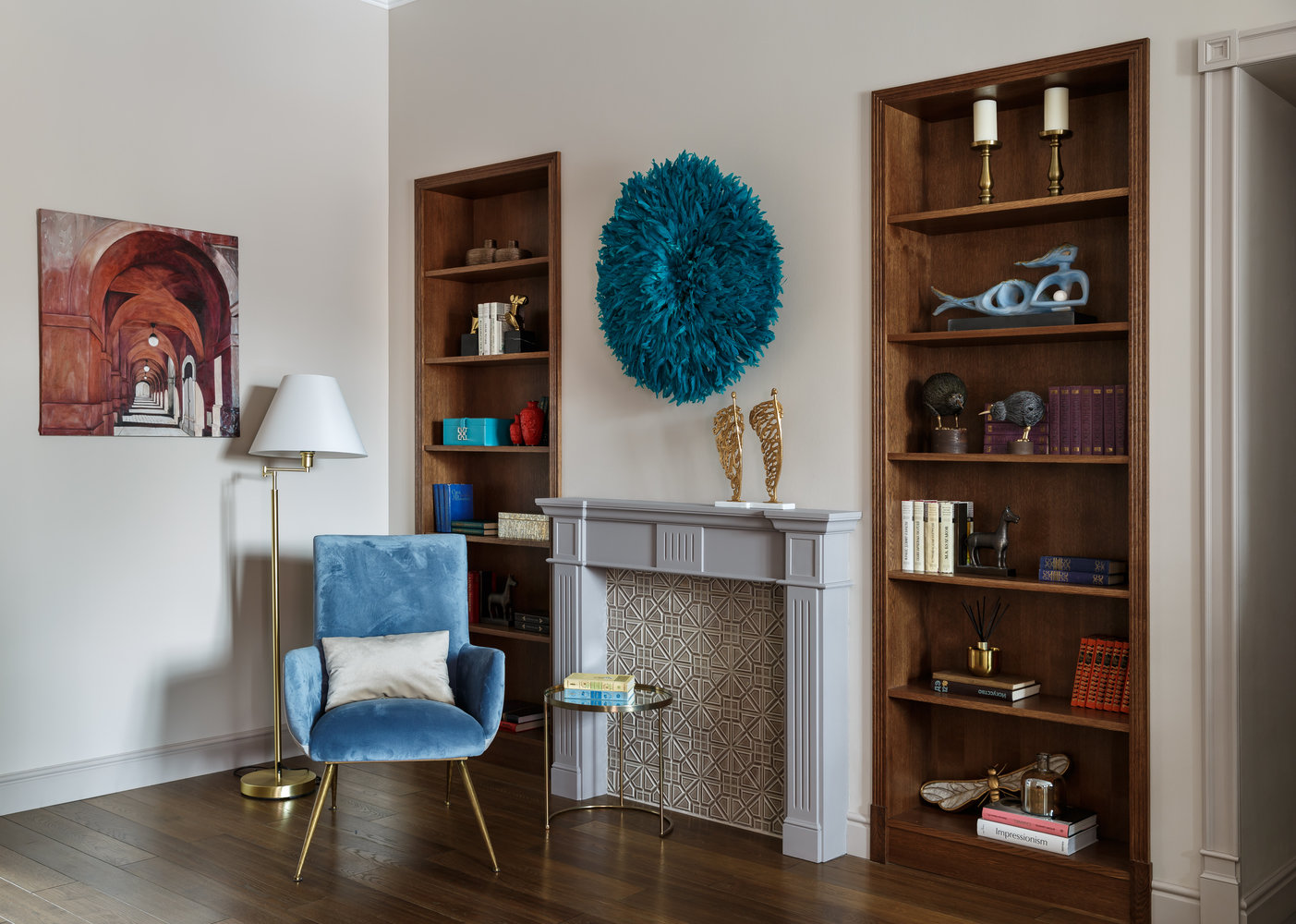 Фотография: Гостиная в стиле Классический, Современный, Квартира, Проект недели, Бежевый, Голубой, Бирюзовый, Кирпичный дом, 4 и больше, Более 90 метров, Иван Сорокин, Наталия Кацуцевичюс – фото на INMYROOM