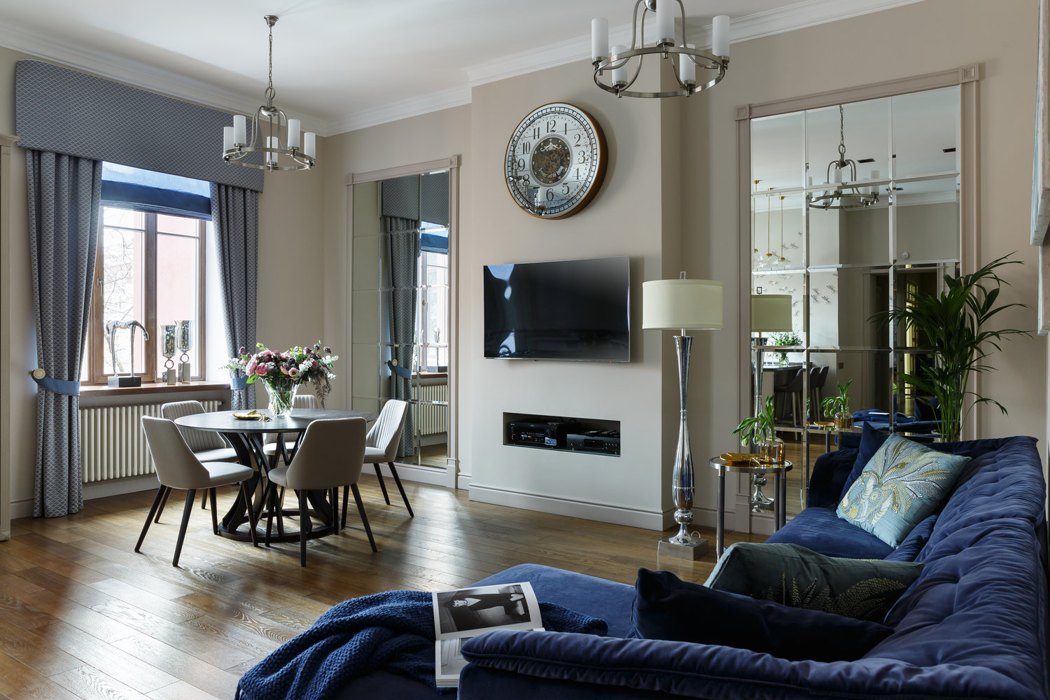 Фотография: Гостиная в стиле Классический, Современный, Квартира, Проект недели, Бежевый, Голубой, Бирюзовый, Кирпичный дом, 4 и больше, Более 90 метров, Иван Сорокин, Наталия Кацуцевичюс – фото на INMYROOM