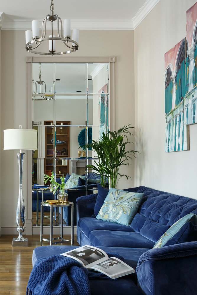Фотография: Гостиная в стиле Современный, Классический, Квартира, Проект недели, Бежевый, Голубой, Бирюзовый, Кирпичный дом, 4 и больше, Более 90 метров, Иван Сорокин, Наталия Кацуцевичюс – фото на INMYROOM