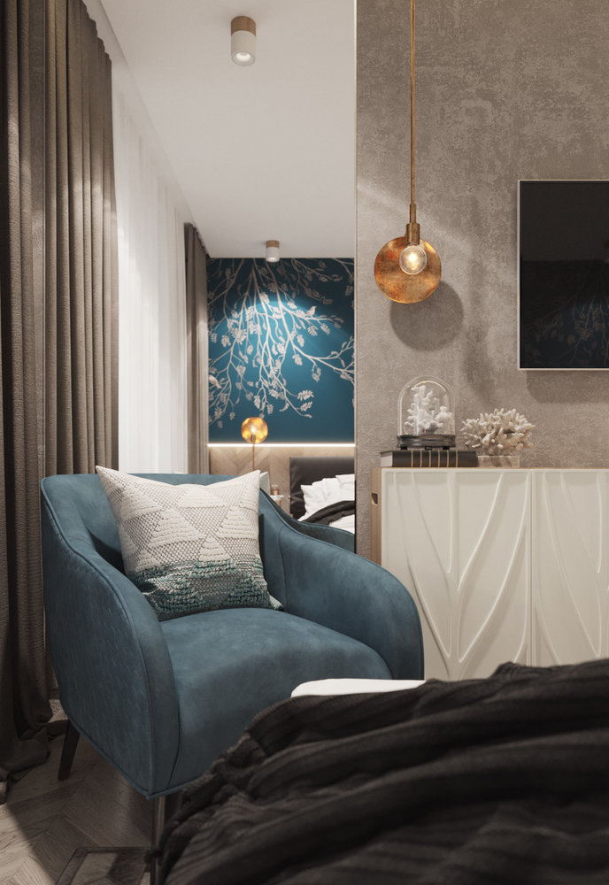 Фотография: Спальня в стиле Современный, Квартира, Проект недели, Москва, Юлия Чернова, Кирпичный дом, 3 комнаты, 60-90 метров – фото на INMYROOM