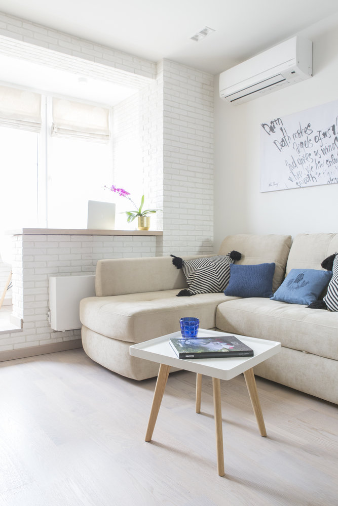 Фотография: Гостиная в стиле Современный, Квартира, Проект недели, Красногорск, Московская область, спальня в нише, 1 комната, 40-60 метров, Sweet Home Design, однушка для молодой девушки, холодильник Smeg, Павшинская пойма – фото на INMYROOM