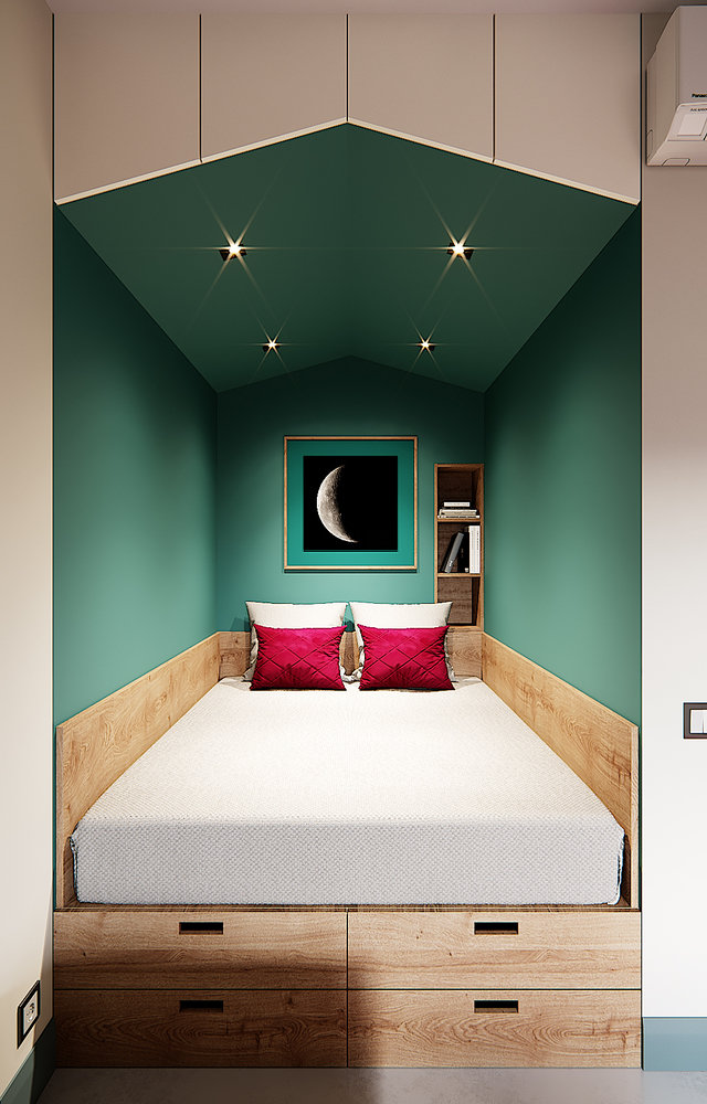 Фотография: Спальня в стиле Современный, Эко, Скандинавский, Квартира, Студия, Проект недели, Москва, Диана Мальцева, Монолитный дом, до 40 метров – фото на INMYROOM
