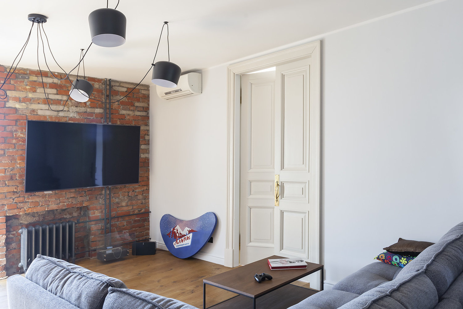 Фотография: Гостиная в стиле Лофт, Квартира, Проект дня, Москва, Красная Пресня, Сталинка, 3 комнаты, Более 90 метров, Оксана Цыбакова – фото на INMYROOM