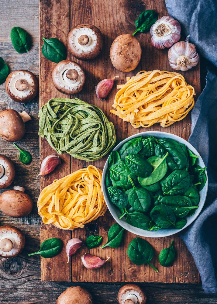 Фотография:  в стиле , Обед, Основное блюдо, Вегетарианская, Веганская, Жарить, Паста, Итальянская кухня, Кулинарные рецепты, Варить, Грибы, 30 минут, Просто, Шпинат, Макароны – фото на INMYROOM