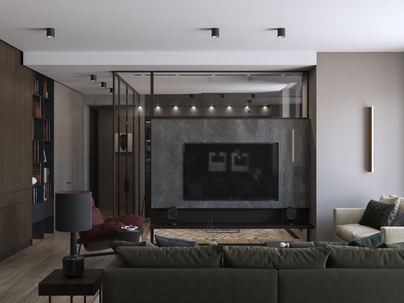 Фотография: Гостиная в стиле Современный, Квартира, Минимализм, Проект недели, Москва, Estima, Монолитный дом, 4 и больше, Более 90 метров, Aiya Design – фото на INMYROOM