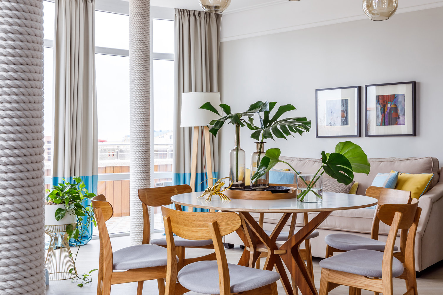 Фотография: Гостиная в стиле Современный, Эклектика, Квартира, Проект недели, Бежевый, Желтый, Голубой, 3 комнаты, 60-90 метров, Анна Акопян, Анапа – фото на INMYROOM