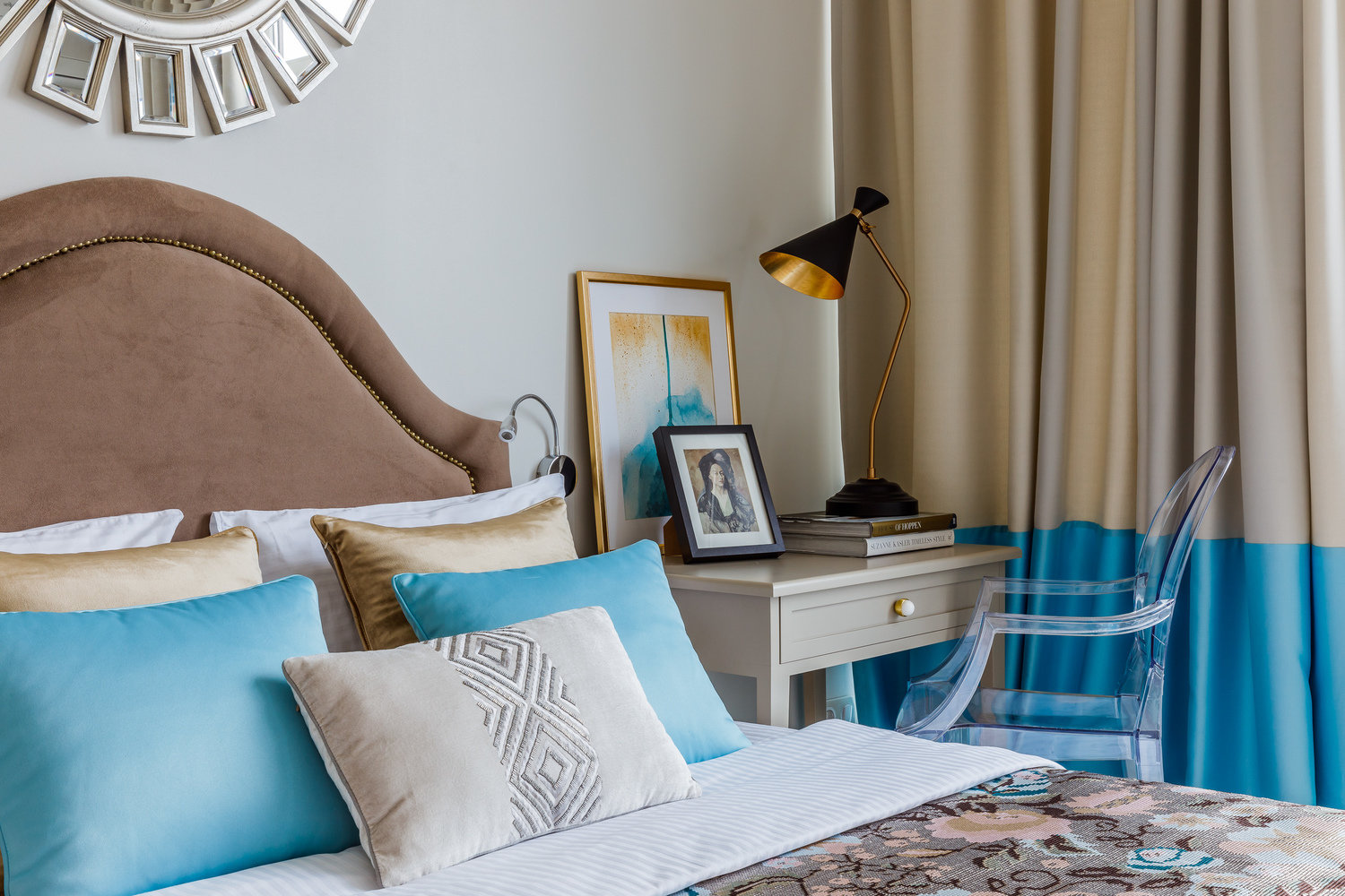 Фотография: Спальня в стиле Современный, Эклектика, Квартира, Проект недели, Бежевый, Желтый, Голубой, 3 комнаты, 60-90 метров, Анна Акопян, Анапа – фото на INMYROOM
