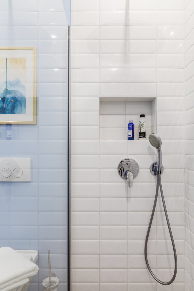 Фотография: Ванная в стиле Современный, Эклектика, Квартира, Проект недели, Бежевый, Желтый, Голубой, 3 комнаты, 60-90 метров, Анна Акопян, Анапа – фото на INMYROOM