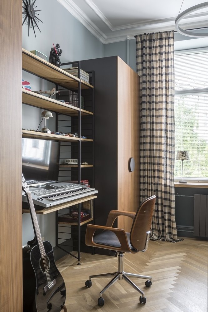Фотография: Кабинет в стиле Современный, Эклектика, Квартира, Проект недели, Москва, Елена Зуфарова, Сталинка, 2 комнаты, 40-60 метров – фото на INMYROOM