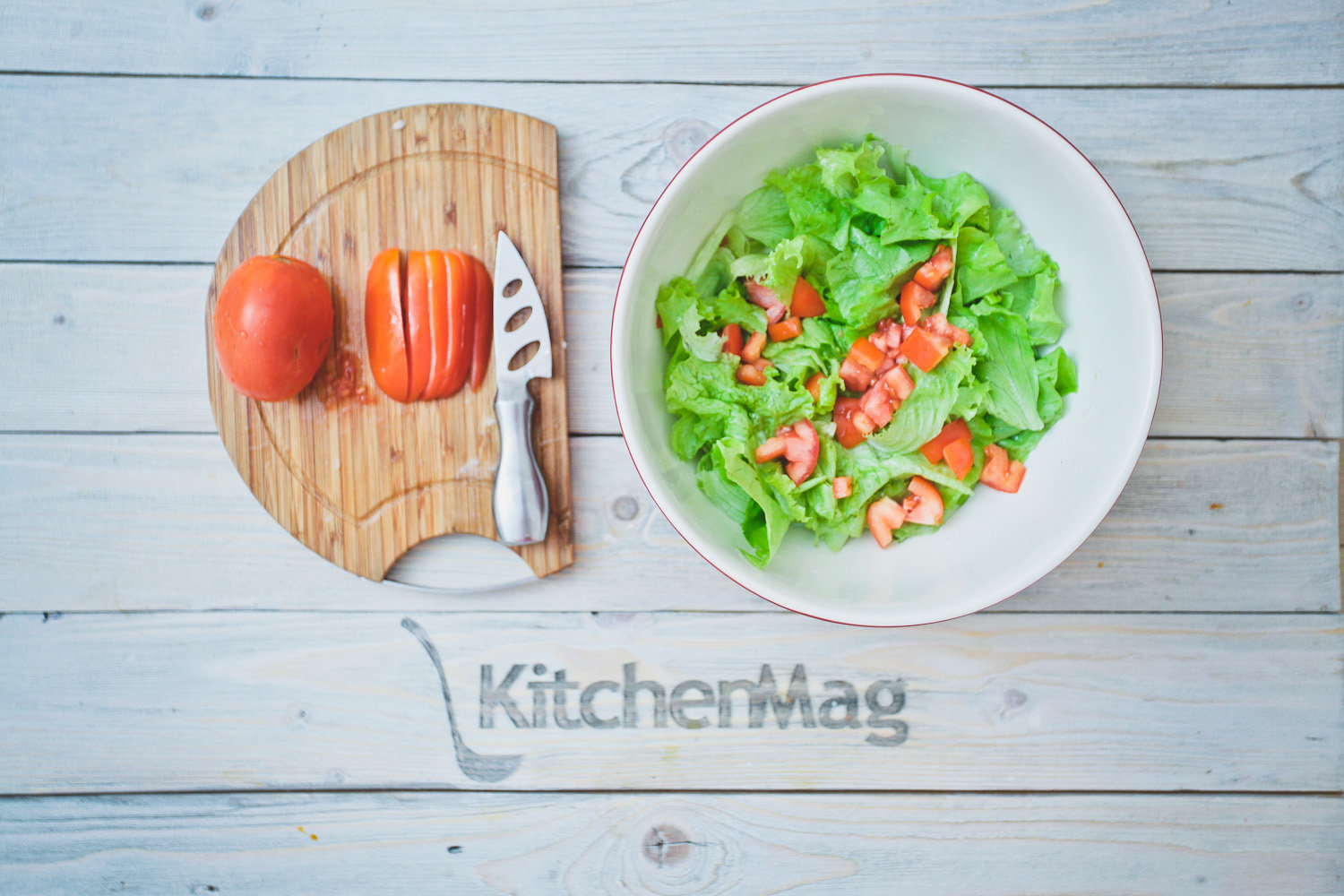 Фотография:  в стиле , Обед, Ужин, Салат, Жарить, Сырым, Птица, Помидоры, Зелень, Кулинарные рецепты, 15 минут, Пришли гости, День рождения, Готовит KitchenMag, Американская кухня – фото на INMYROOM
