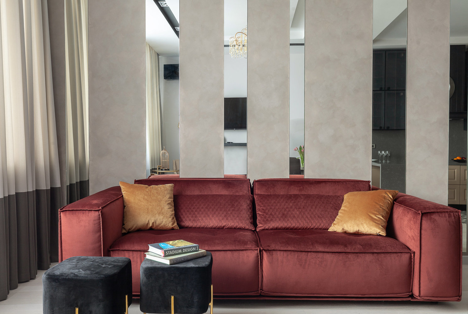 Фотография: Гостиная в стиле Современный, Квартира, Проект недели, Москва, Бежевый, Розовый, Фуксия, 2 комнаты, 60-90 метров, ЖК "Горизонт", Carmine home – фото на INMYROOM