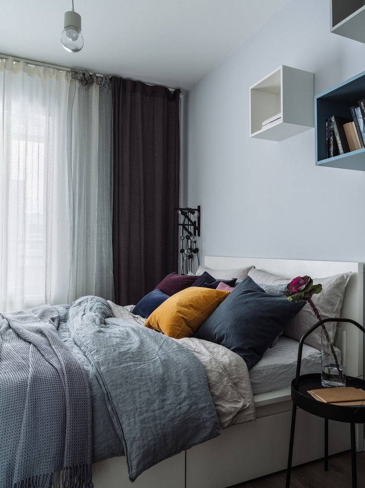 Фотография: Спальня в стиле Современный, Скандинавский, Квартира, Проект дня, Красногорск, Монолитный дом, 1 комната, до 40 метров, Елена Соренсен, Ольга Шангина – фото на INMYROOM