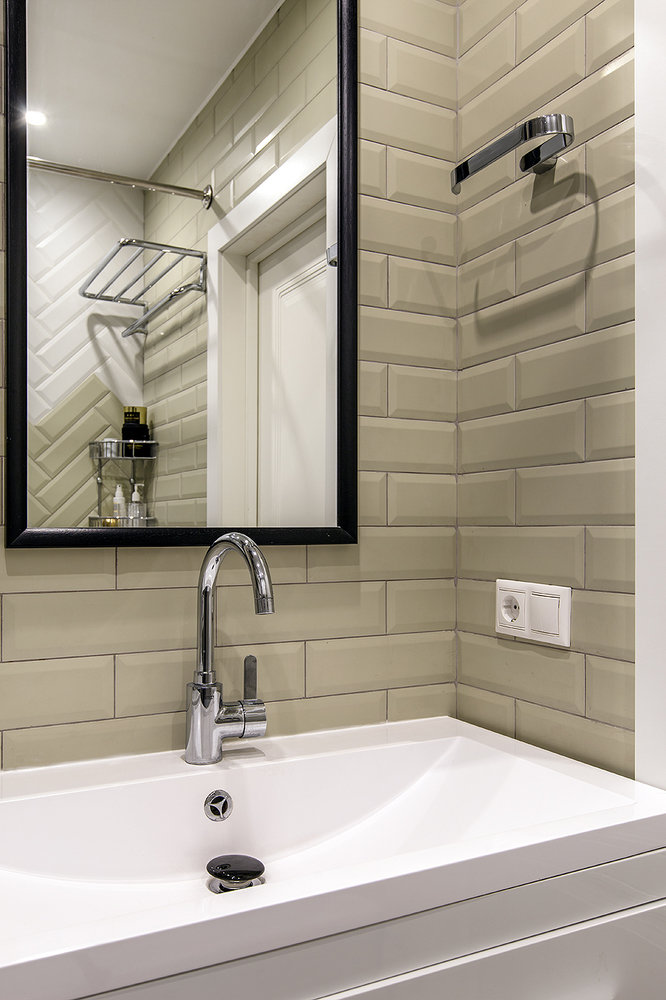 Фотография: Ванная в стиле Современный, Скандинавский, Квартира, Проект недели, Москва, Панельный дом, 2 комнаты, 40-60 метров, Елена Карасаева – фото на INMYROOM